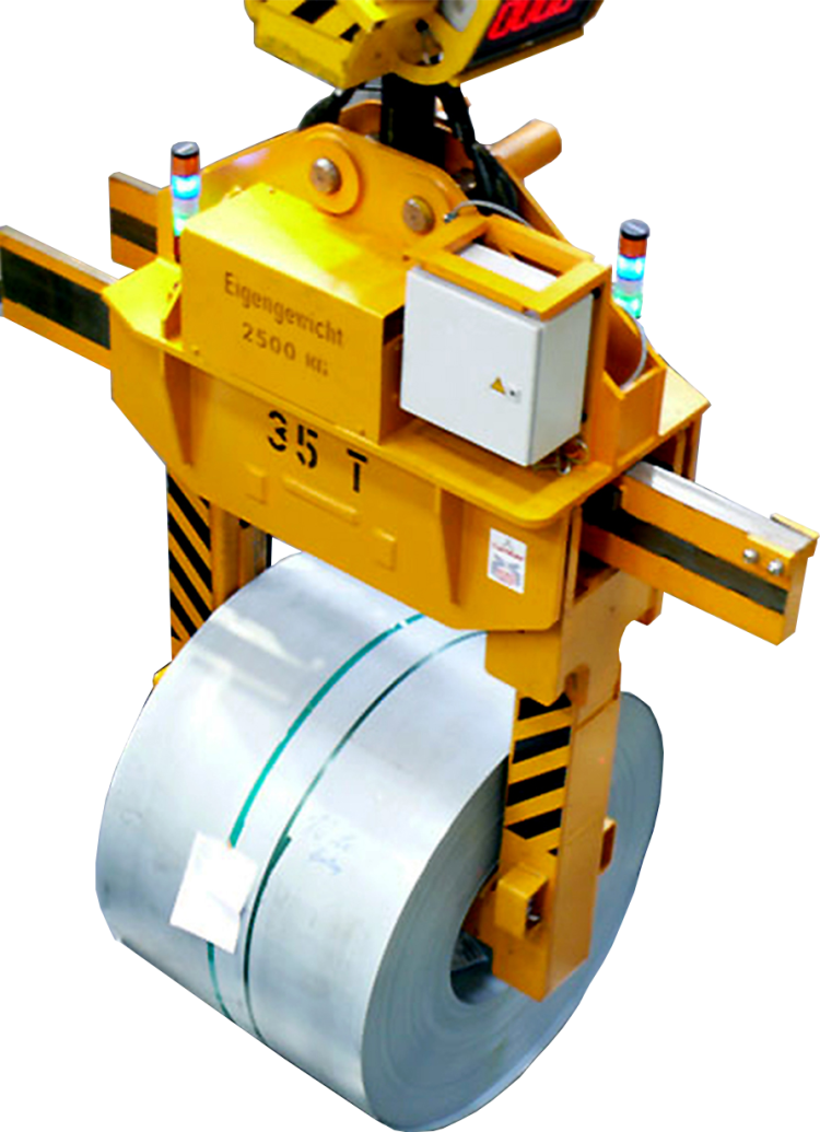 เครื่องขาหนีบยกเหล็กม้วน (Coils Tong)เครื่องขาหนีบยกเหล็กม้วน (Coils Tong) อุปกรณ์ช่วยยกเหล็กรูปพรรณไว้สำหรับยกเหล็กที่มีขนาดใหญ่ เช่น เหล็กม้วน(Coil) เป็นอุปกรณ์ที่เป็นระบบไฟฟ้ามีความสะดวกสำหรับการยกเหล็กม้วนเป็นอย่างมาก